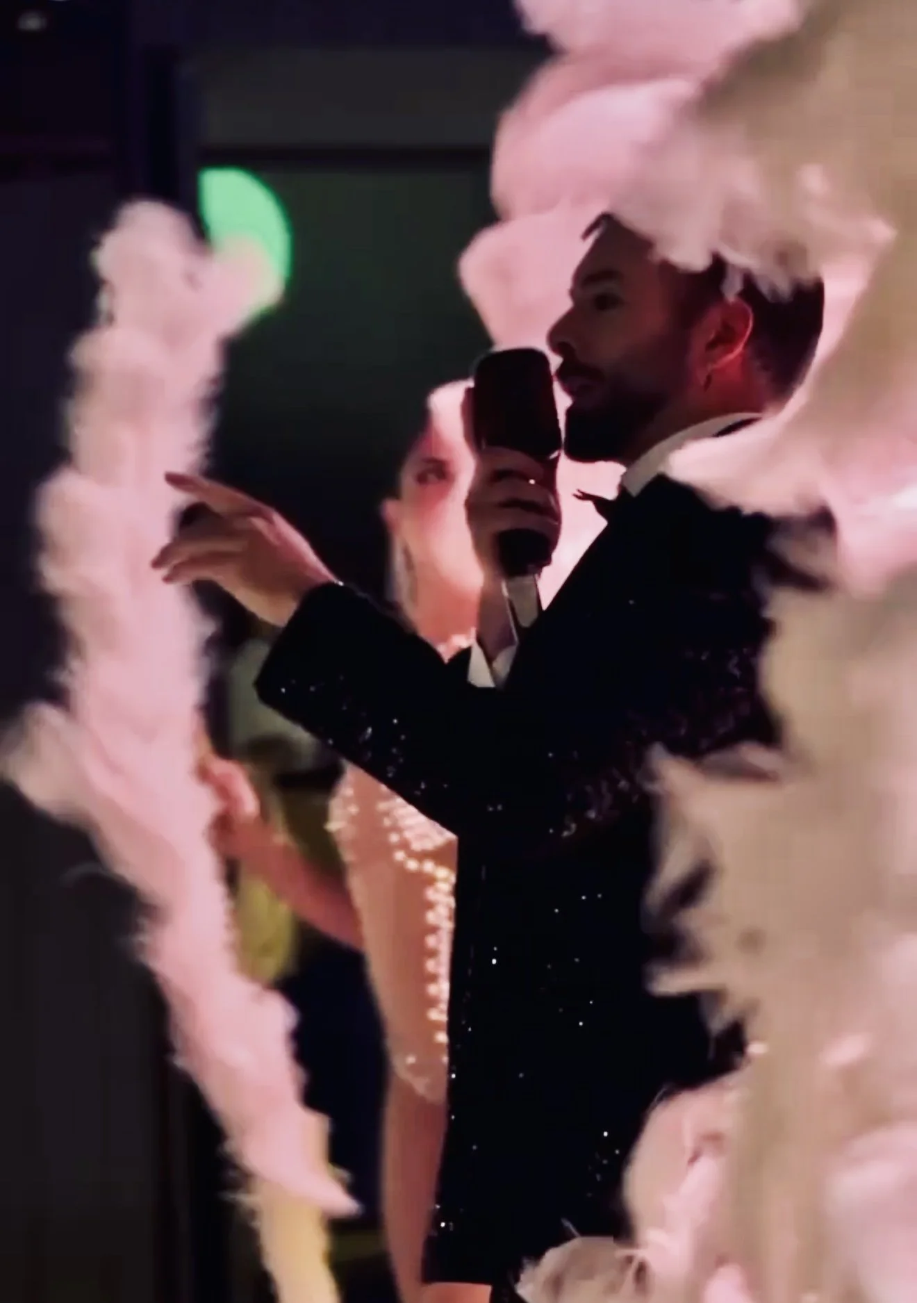 As with the other versions, this package includes the DJ set during the event and from the end of the show until closing, the stage, technical setup, and a minimum total of nine performers on stage. The dancers and vocalists are involved both in the main show and in the entertainment moments, transforming every phase of the evening into a unique and continuous experience, where guests are accompanied and engaged from start to finish, fully immersed in the unmistakable entertainment style of The MC.